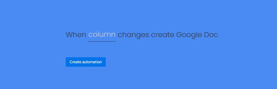 Choose the automation to set up. Select any column that you would like to trigger for creation of the document. (For example: On change of the status). Click ‘Create Automation’.