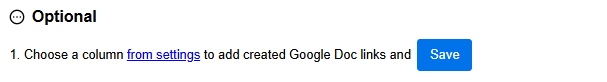 Step - 6: You can choose to save the links of generated Google Doc for each item, in a link column in your board. This might be helpful if you plan to embed the Doc in your item with the ‘Embed’ feature of this app. Open the settings panel on the right, select a link column and then click Save.